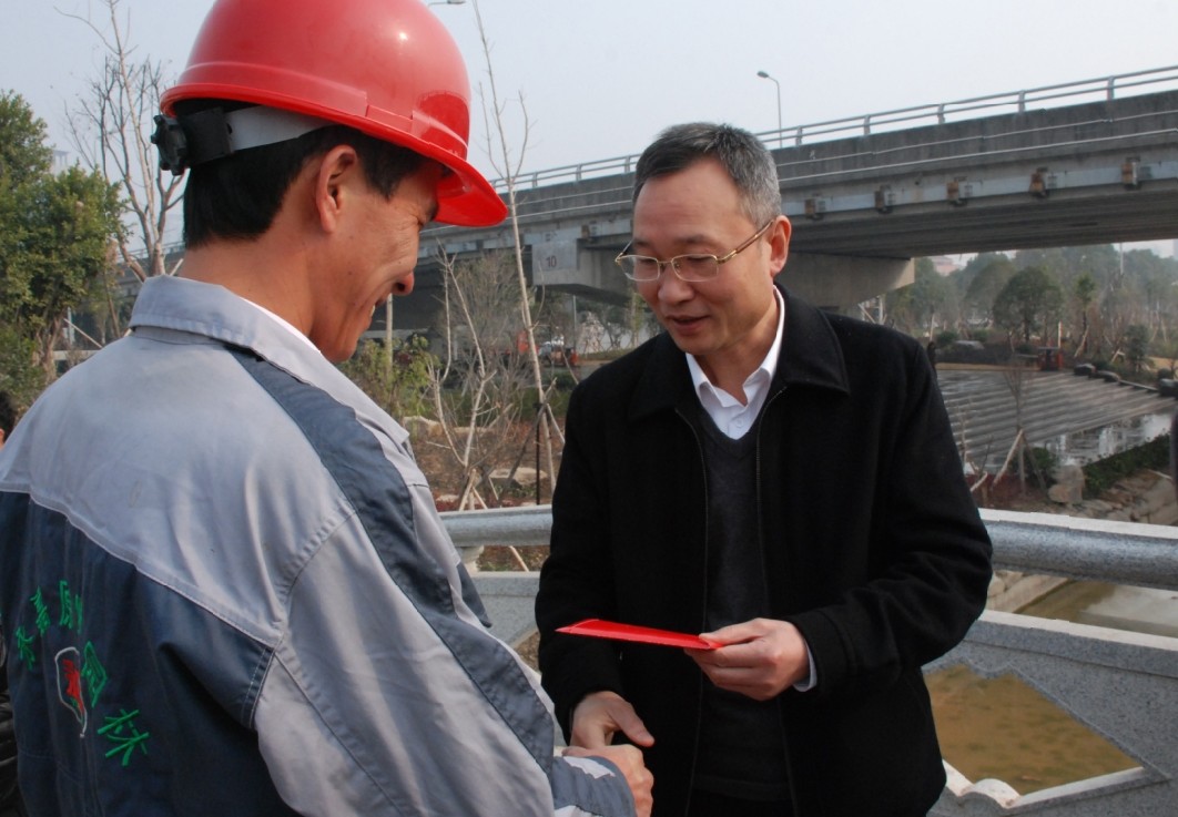 2014-01-26元月26日上午,婁紹光縣長(zhǎng)來到甌北西段標(biāo)準(zhǔn)堤景觀綠化工程施工現(xiàn)場(chǎng),慰問工程項(xiàng)目的現(xiàn)場(chǎng)工作人員,并送來了慰問金。縣人大與發(fā)改局、總工會(huì)等部門的領(lǐng)導(dǎo)隨同慰問。