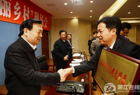 夏寶龍為榮獲2013年度浙江省美麗鄉(xiāng)村創(chuàng)建先進(jìn)縣頒獎(jiǎng)