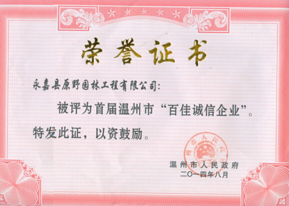 2014-08-098月8日,在第十二個“8·8誠信日”主題活動大會上,溫州市首屆“百佳誠信企業(yè)”名單新鮮出爐。永嘉原野園林、正泰集團、奧康鞋業(yè)、華峰集團等108家企業(yè)被授予首屆溫州市“百佳誠信企業(yè)”稱號。