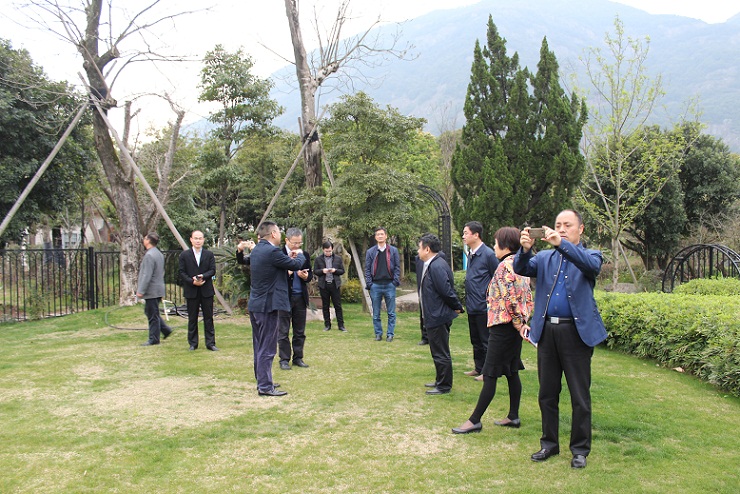 李星濤董事長為考察團(tuán)詳細(xì)介紹了農(nóng)莊的發(fā)展以及涉及領(lǐng)域,原野目前擁有7個(gè)苗圃基地,共2000苗種植面積,并設(shè)有科研部門,積極響應(yīng)省政府“十三五”期間提出的“新植1億株珍貴樹,為子孫后代留財(cái)富”的口號(hào),研發(fā)南方紅豆杉、雁蕩潤楠、江南油杉、黃花梨等珍稀、瀕危樹種,種植了100來萬株珍貴樹木。省水利廳廳長陳龍,對(duì)于原野重視自然環(huán)境保護(hù),積極配合”五水共治“的研發(fā)治理工作,表示了高度肯定。原野種植研究紅楠,利用紅楠樹可吸收重金屬的特性,消滅劣Ⅴ類水,改善被電鍍、化工污染的土地,將淤泥變?yōu)榱继铩4送?,原野還與浙江省林學(xué)院開展合作,建有800多畝的基地,研究鐵皮石斛豐產(chǎn)栽培技術(shù),目前大棚中種植了26種鐵皮石斛,方便日常觀察生長情況。