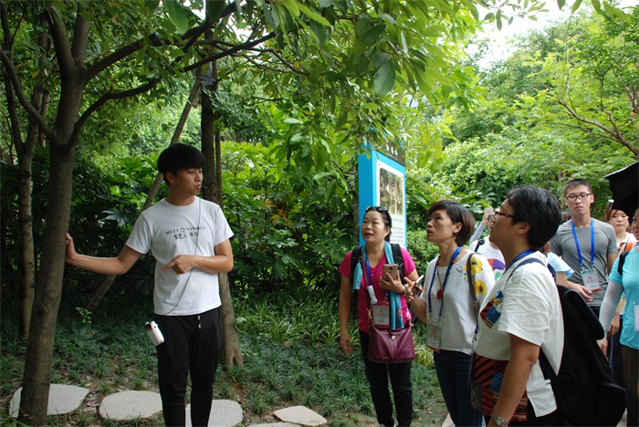 交流團(tuán)由羅漢松林進(jìn)入,林內(nèi)的羅漢松造美奇特,樹姿高雅,蒼勁挺拔,贏得交流團(tuán)交口稱贊,讓大家驚呼“這個(gè)價(jià)值很高吧”。隨后進(jìn)入紅楠嶺,講解員解說道:“每個(gè)城市都有它的市樹,香港是紫荊樹,溫州是榕樹,現(xiàn)在大家看到的紅楠是永嘉縣樹,它可以吸收土壤中的重金屬。按照游覽路線,我們進(jìn)入了鐵皮石斛棚,棚內(nèi)種植著26種鐵皮石斛,其較高的藥用價(jià)值及食用價(jià)值引起了是香港青年們的關(guān)注——鐵皮石斛可以藥用,也可以煲湯,它全身都可以吃,莖可以榨汁,花和葉子可以泡茶,位列九大仙草之首。