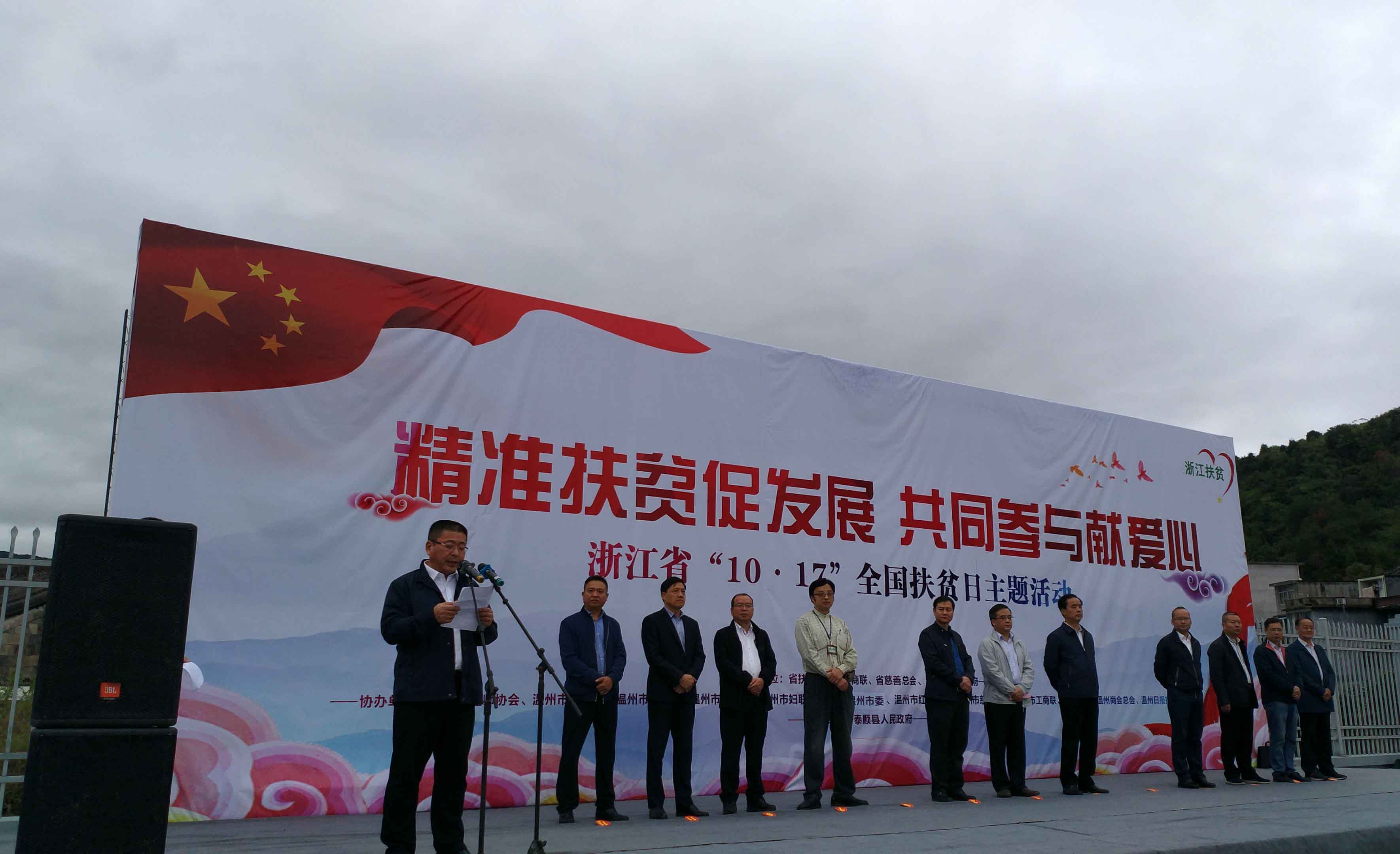 10月17日是全國第四個“扶貧日”,由浙江省扶貧辦、浙江省工商聯(lián)、浙江省慈善總會、溫州市人民政府主辦,浙江省醫(yī)師協(xié)會、溫州市扶貧辦、溫州市紅十字會、溫州市慈善總會、溫州市工商聯(lián)、溫州日報報業(yè)集團等單位協(xié)辦,泰順縣人民政府承辦的“精準扶貧促發(fā)展,共同參與獻愛心-浙江省‘10.17’全國扶貧日主題活動”于10月17日上午在泰順縣雅陽鎮(zhèn)舉行。