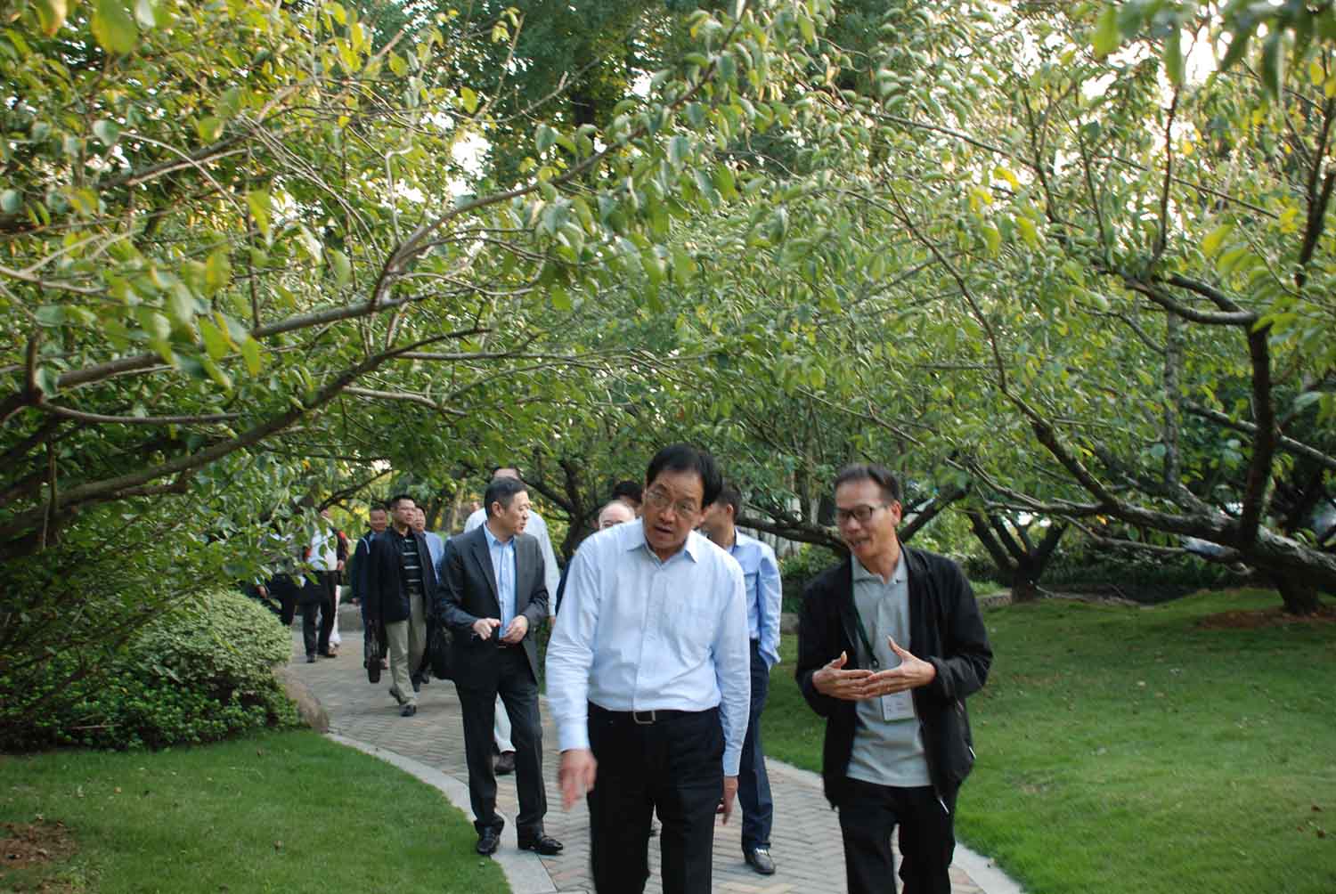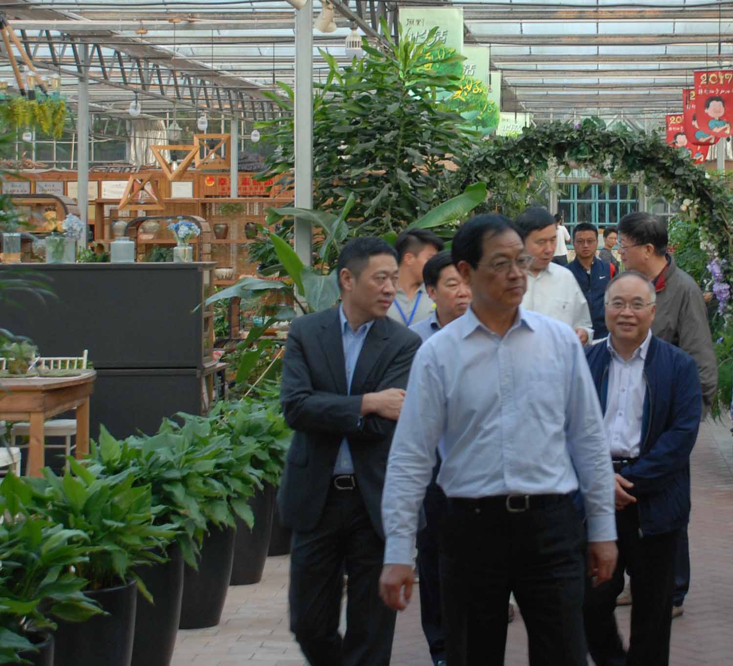 當(dāng)天下午,孫文友一行走進(jìn)原野農(nóng)莊,眼前豁然開朗,各種樹木匯成了一片綠海。艷麗奪目的花草,碧綠的樹木,猶如步入了一個(gè)綠色的世界。調(diào)研組一行參觀了農(nóng)莊內(nèi)的梅園、羅漢松林、婚慶草坪、特色民宿、鐵皮石斛棚、園藝家超市等場(chǎng)所。調(diào)研組一路走、一路看,一邊詢問(wèn)原野農(nóng)莊經(jīng)營(yíng)方面的情況。