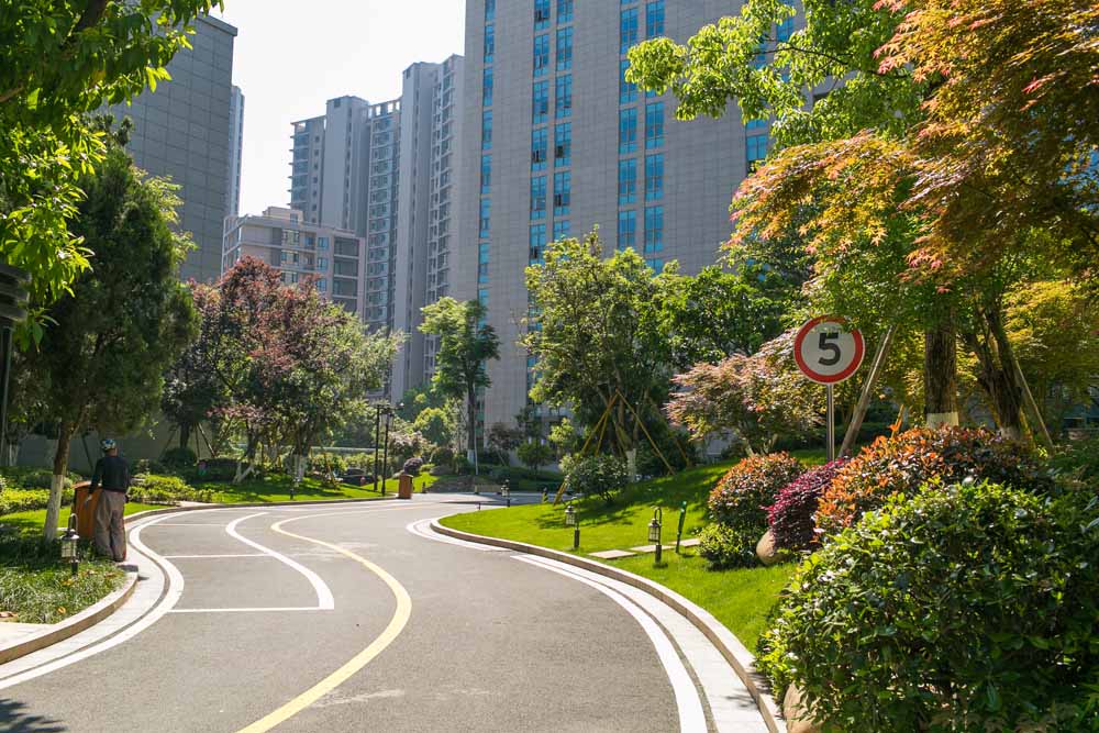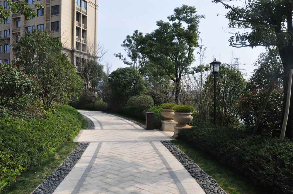 原野建設(shè)打造的龍灣C-14地塊景觀綠化工程,位于永寧西路北側(cè)、緊靠著越秀中學(xué),綠化面積6076.35平方米小區(qū)建筑屬超高層,人走進(jìn)去會(huì)給人很重的壓抑感,建筑外立面米黃色,屬淡色調(diào),再加上綠化設(shè)計(jì)要求品種多樣,季相變化豐富,特別是商業(yè)街花壇以及塑石假山瀑布區(qū)的植物,花壇里種植的苗木要求高度、干徑、分叉、冠幅全部一致,通過修剪來達(dá)到統(tǒng)一;再者塑石假山瀑布區(qū)的植物,好山好水必定要有好的造型植物來配,所以專門購買了進(jìn)口紅楓、雞爪槭、樸樹等,再配上本地的中、低層喬木及季節(jié)性灌木及地被植物,使整個(gè)小區(qū)一步一景,步移景異,植物季相色彩變化豐富,給人以生活在原生態(tài)大自然中的感覺。