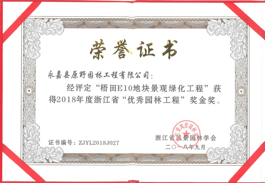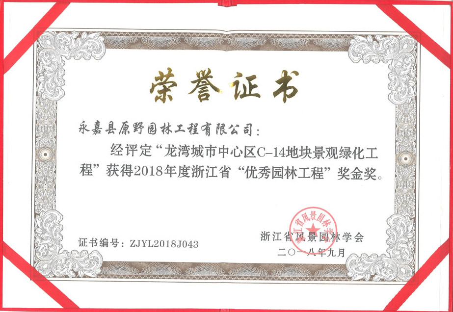 2018-12-3012月21日,浙江省第八屆“園林人居”論壇暨2018年“優(yōu)秀園林工程”獎(jiǎng)?lì)C獎(jiǎng)大會(huì)在杭州舉行。原野建設(shè)承建的“龍灣城市中心區(qū)c-14地塊工程”(以下簡稱C14)、“梧田E10地塊景觀綠化工程”(以下簡稱E10)、“永嘉縣行政中心建設(shè)工程景觀綠化工程”(以下簡稱行政中心建設(shè))三個(gè)項(xiàng)目分別獲得2018年度浙江省“優(yōu)秀園林工程獎(jiǎng)”金獎(jiǎng)。