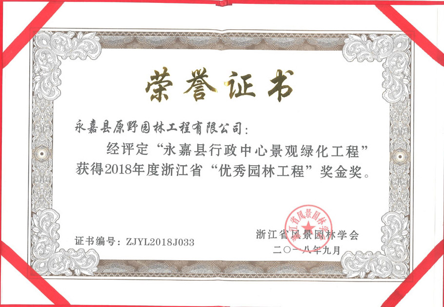 喜報(bào):原野建設(shè)三個(gè)景觀項(xiàng)目獲浙江省優(yōu)秀園林工程金獎(jiǎng)!