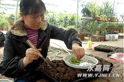 永嘉縣原野園林工程有限公司一直致力于本土樹種的開發(fā),我市提出綠化主推本土樹種后,該公司把無(wú)柄小葉榕做為突破口,運(yùn)用先進(jìn)的環(huán)境調(diào)控技術(shù),采用種子容器育苗,解決無(wú)柄小葉榕大批量繁育種苗問(wèn)題,目前已經(jīng)成功地培育出10萬(wàn)余棵無(wú)柄小葉榕。圖為工作人員正在進(jìn)行容器育苗。記者汪學(xué)斌