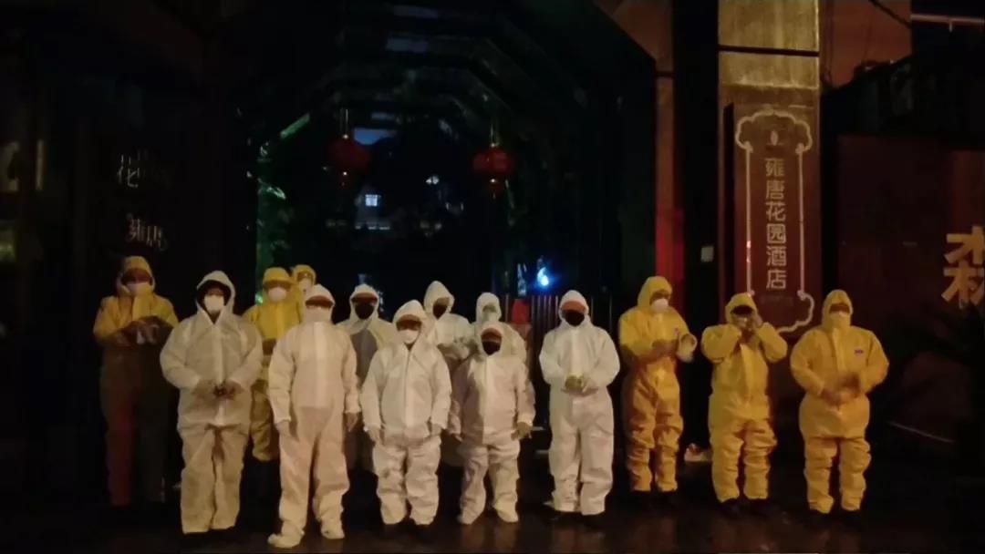 據(jù)了解,至7日凌晨2點(diǎn),8名消毒隊(duì)員連夜奮戰(zhàn),共噴灑84消毒液80公斤。