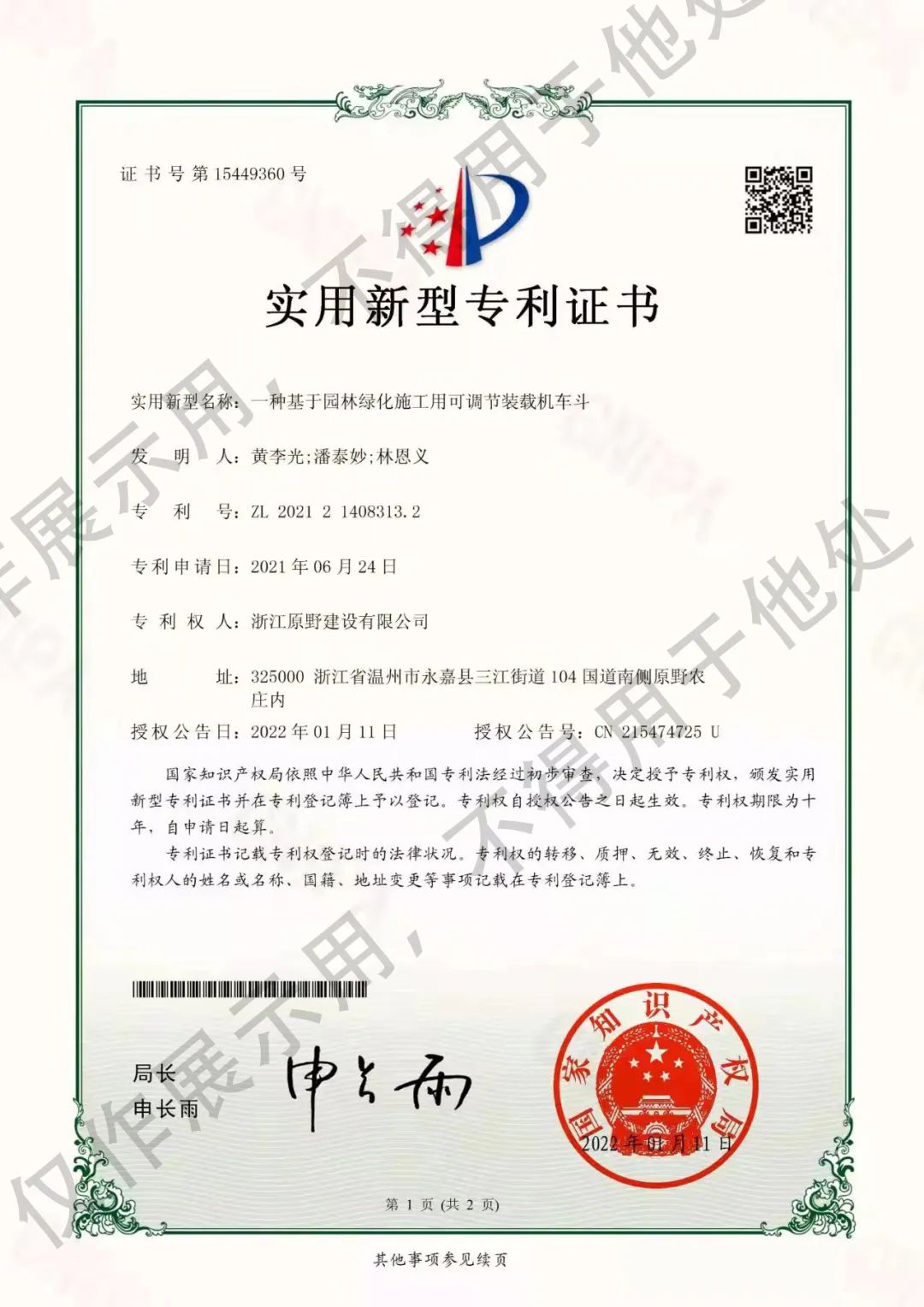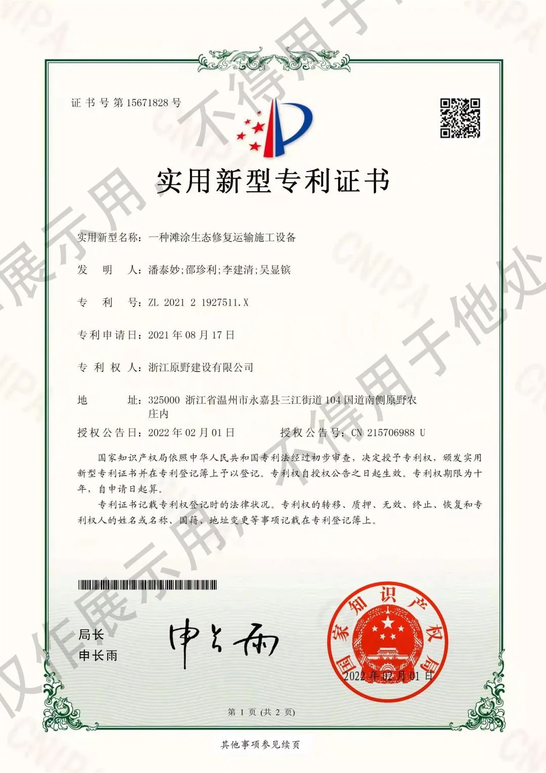 2022-03-212022年第一季度,原野新增兩項(xiàng)實(shí)用新型專利,至此,原野累計(jì)獲得專利增至40項(xiàng)。