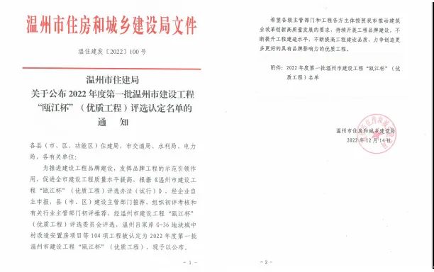 原野建設(shè)獲2022年度溫州市市政行業(yè)“一先一優(yōu)”榮譽(yù)