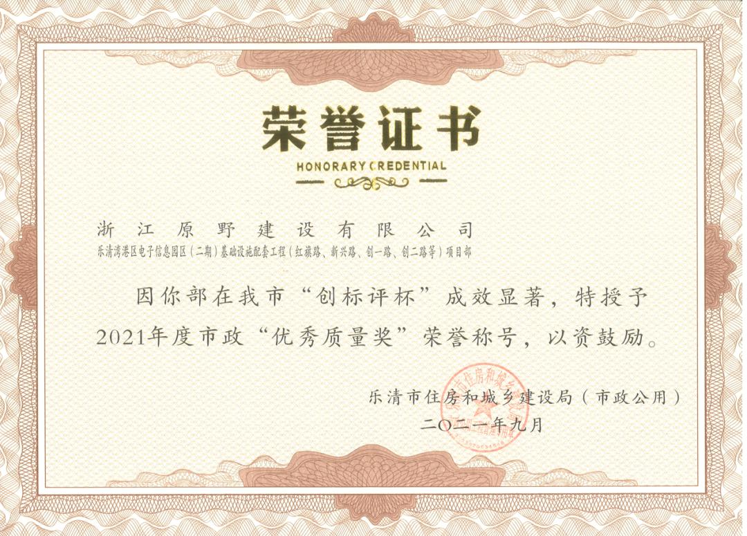 2023-10-1610月16日,根據(jù)溫市政業(yè)[2023]1號(hào)文件《溫州市市政行業(yè)“一先一優(yōu)”申報(bào)的通知》和溫市政業(yè)[2012]14號(hào)文件《溫州市市政行業(yè)先進(jìn)單位評(píng)選辦法》、溫市政業(yè)[2012]18號(hào)文件《溫州市市政工程優(yōu)秀項(xiàng)目經(jīng)理評(píng)選辦法》的規(guī)定,經(jīng)各單位申報(bào)、各區(qū)縣住建局或市政園林局推薦,市市政行業(yè)協(xié)會(huì)秘書處組織對(duì)申報(bào)材料初審、評(píng)審小組綜合評(píng)議、無記名投票和公示等程序,“浙江原野建設(shè)有限公司”被評(píng)為“2022年度溫州市市政行業(yè)先進(jìn)單位”。擔(dān)任樂清灣港區(qū)電子信息園區(qū)(二期)基礎(chǔ)設(shè)施配套工程項(xiàng)目經(jīng)理的楊衛(wèi)明,被評(píng)為“2022年度溫州市市政工程優(yōu)秀項(xiàng)目經(jīng)理”。