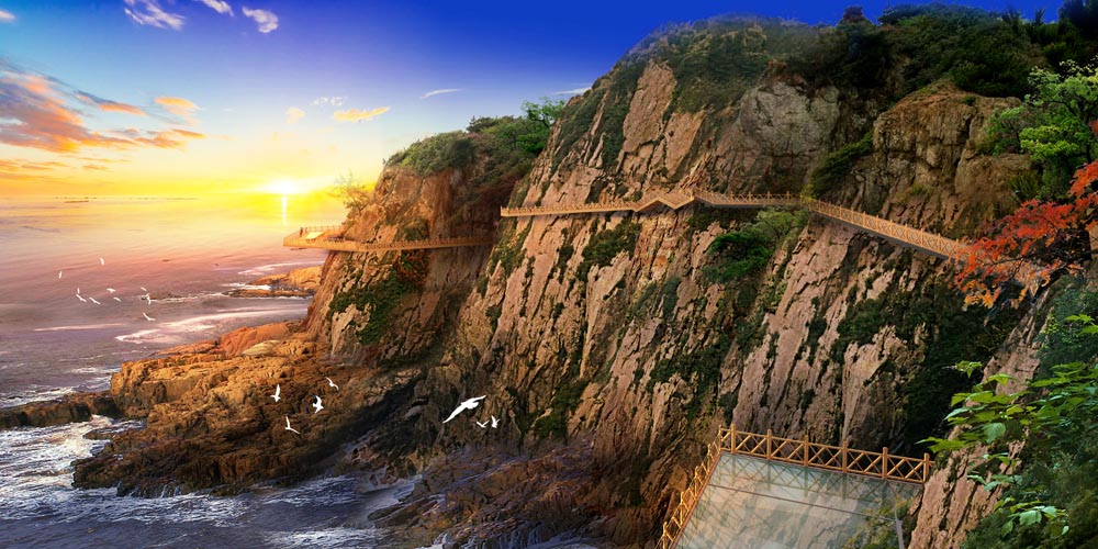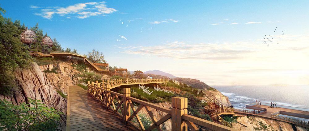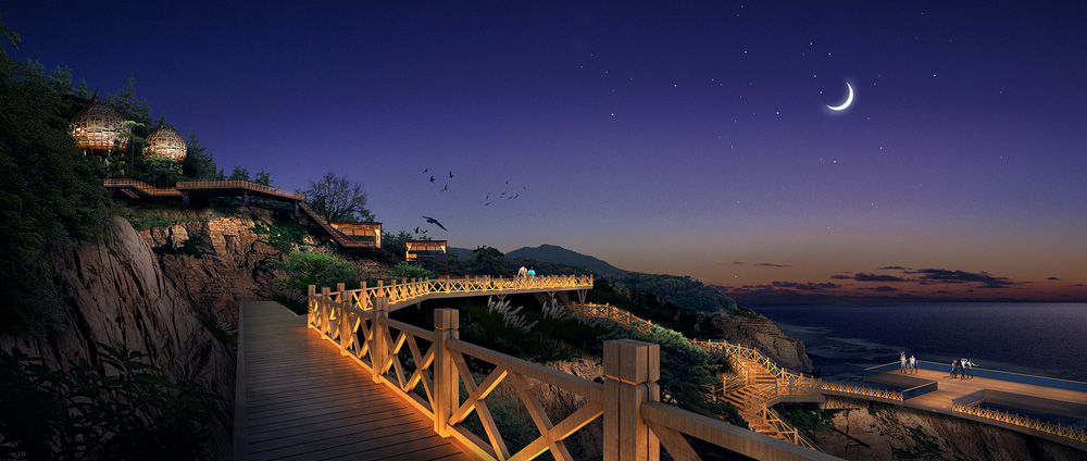 “龍吟東海,鳳鳴半屏”營(yíng)造步移景異、跌宕起伏的視覺(jué)感受,悠然閑適、別具匠心的休憩體驗(yàn),打造一個(gè)氣勢(shì)磅礴、蜿蜒曲折、藝術(shù)渲染的原生態(tài)漫步廊道。
