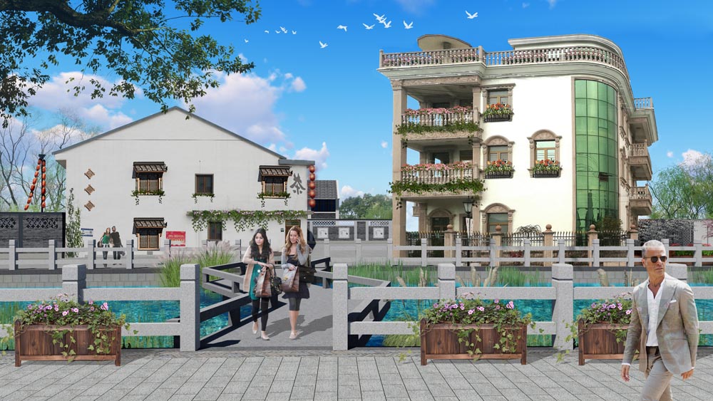 樟里村建筑融合了浙南區(qū)域特征的傳統(tǒng)式村居和西方異域特征的歐式洋房風(fēng)格,通過修繕提升部分建筑立面,既保留樟里的特征文化記憶,又展現(xiàn)“甌”與“歐”相遇,多元素多風(fēng)格的共生共長,呈現(xiàn)文化交流和諧共存的融合之美。以生活居住為主,旅游休閑為輔,通過優(yōu)化功能逐步形成生活、服務(wù)和基礎(chǔ)設(shè)施完善的具有時(shí)代特征和溫州特色的“慢生活”社區(qū)。