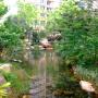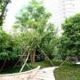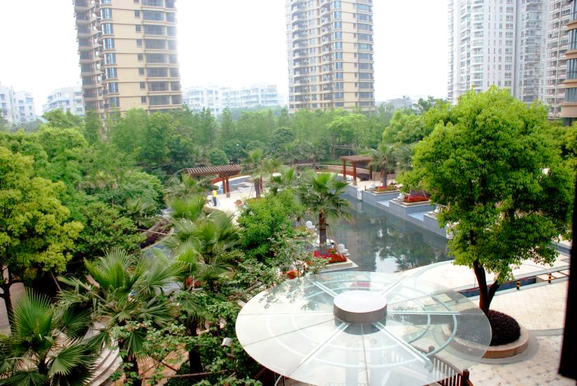 泳池、木質(zhì)小路、綠色屏障般四季長青的中庭景觀