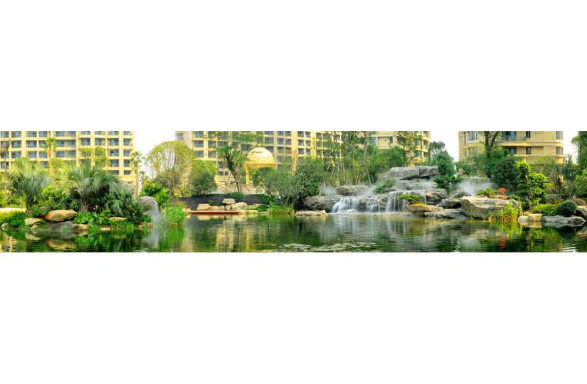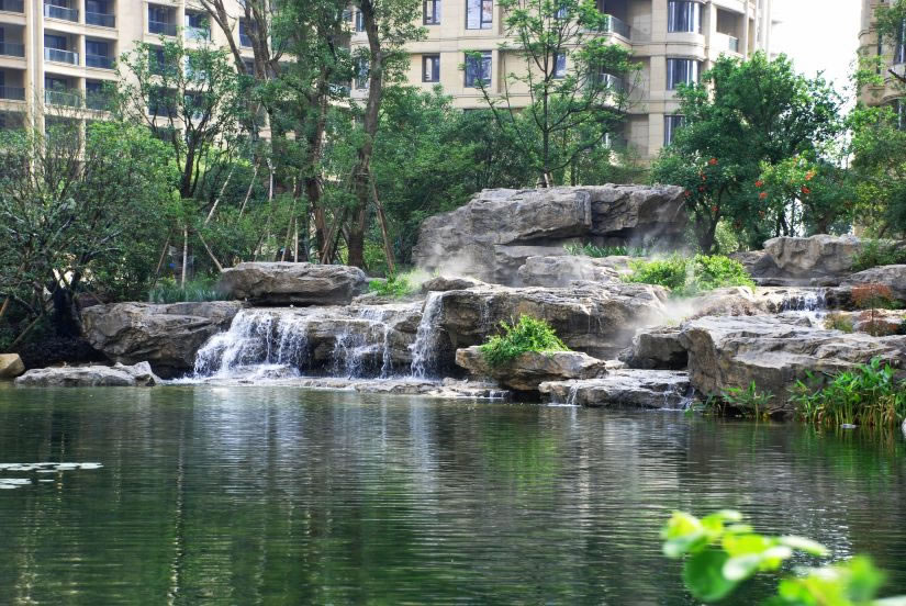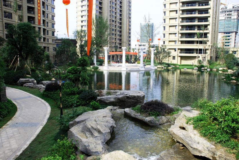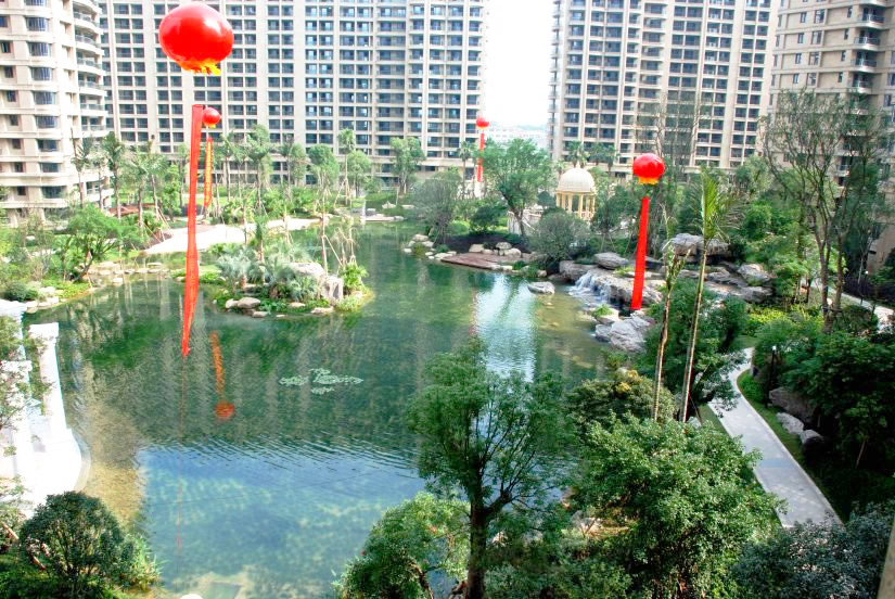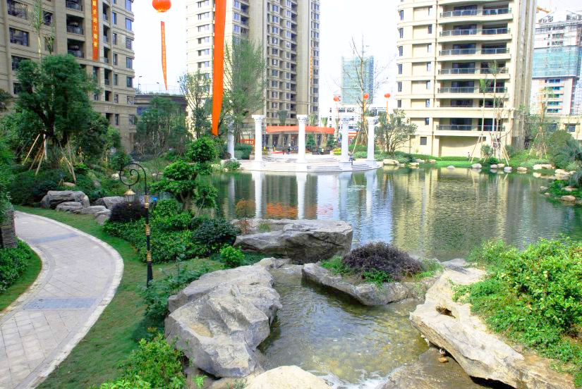 自然、真切、和諧的宜居景觀小品,疊合塑石假山與流動水系的生物循環(huán)構(gòu)建綠化、和諧、綠意的庭園景觀。 榮獲2014年中國優(yōu)秀園林工程金獎。
