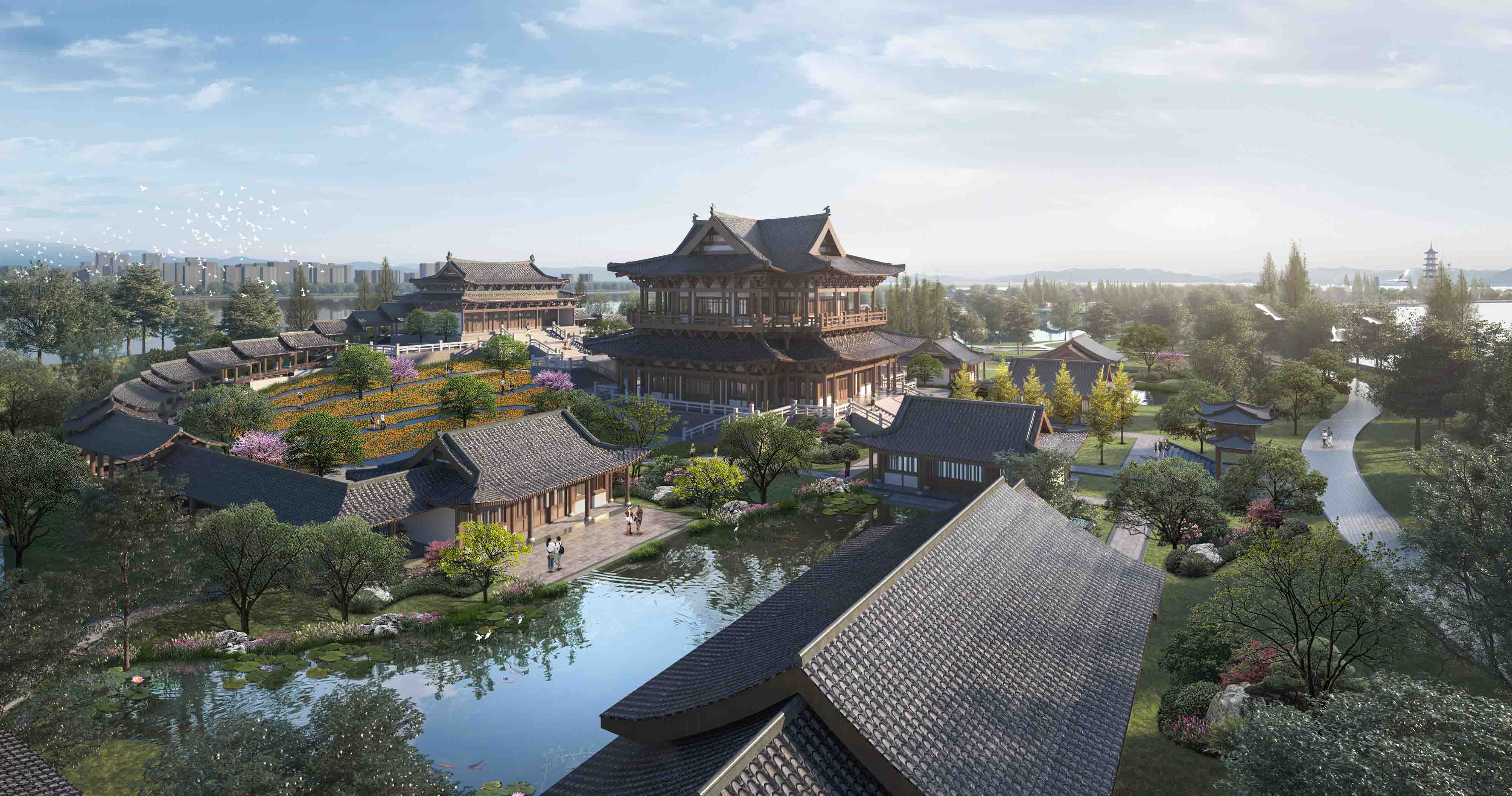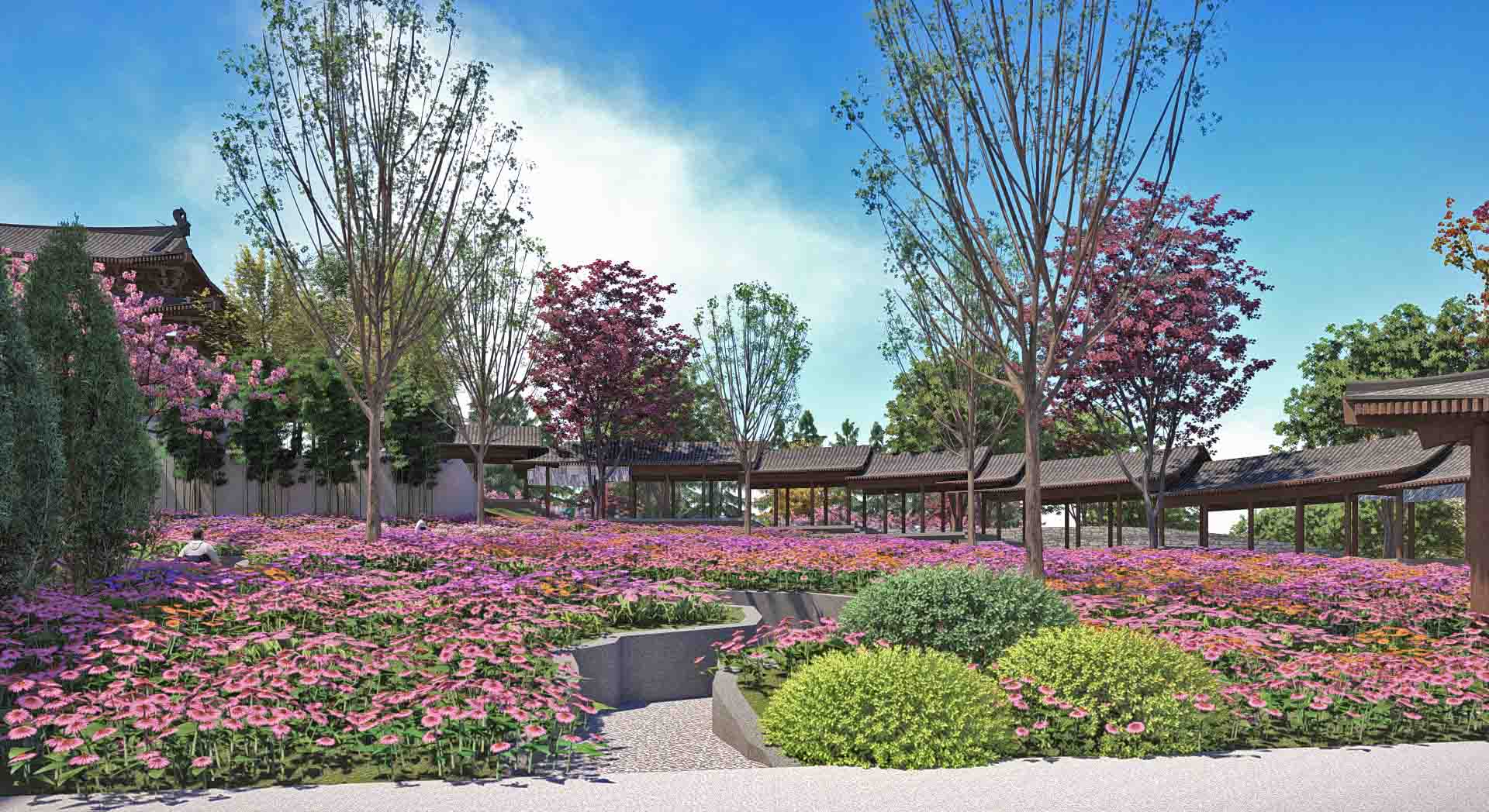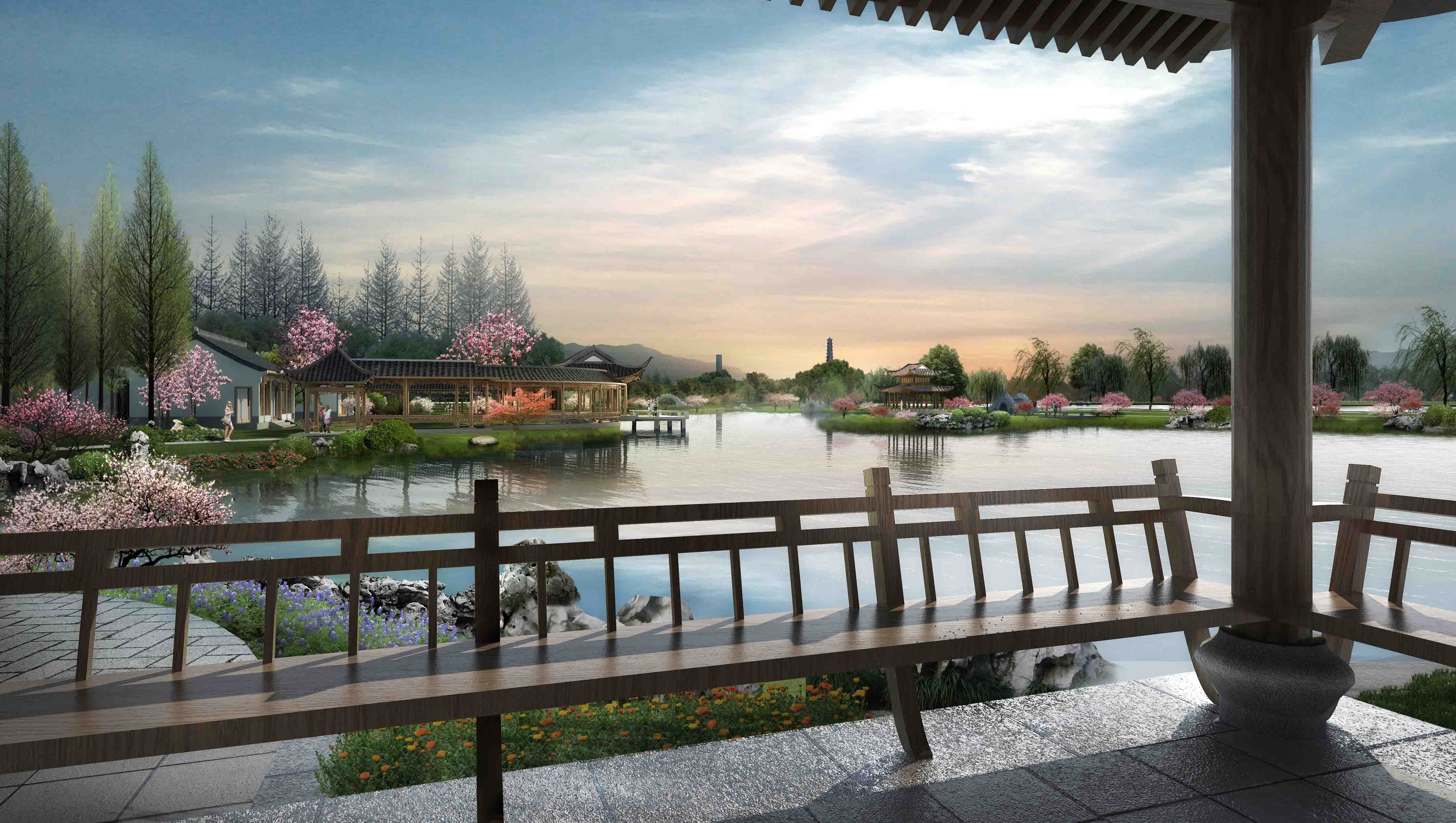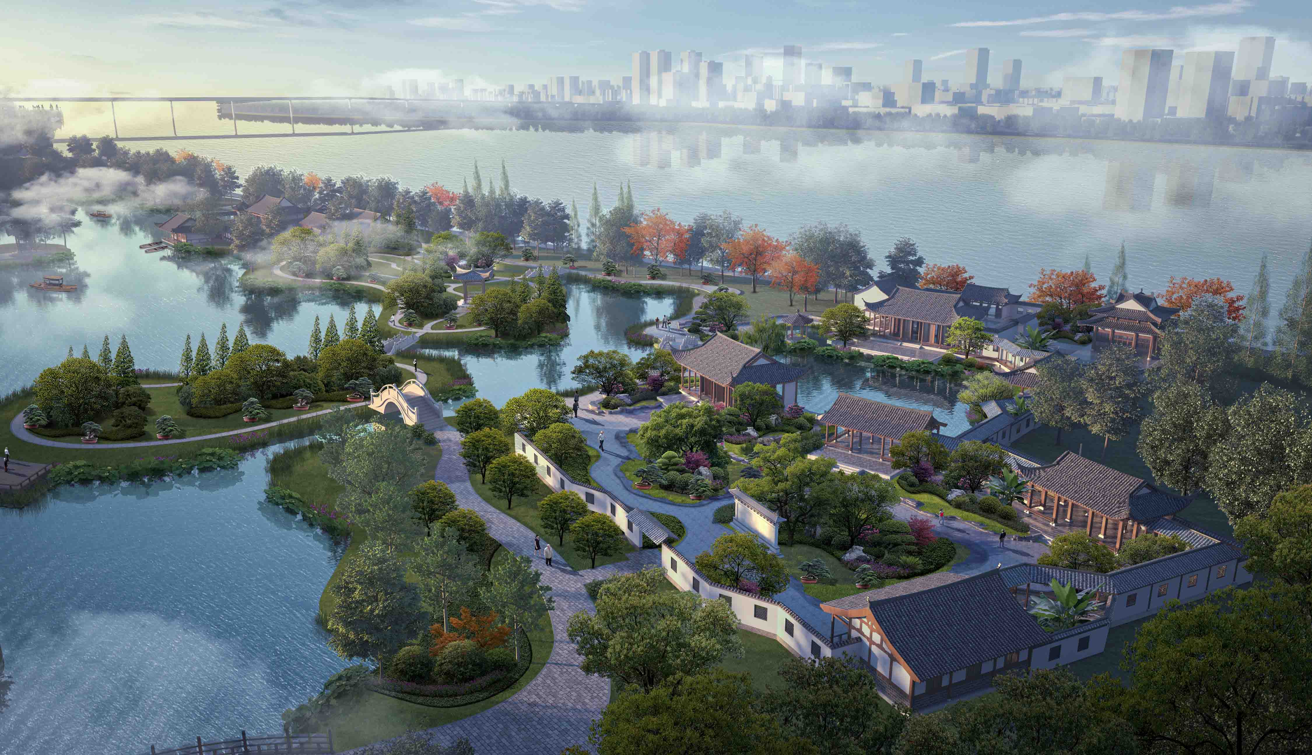 項(xiàng)目圍繞詩、禪、航標(biāo)三個(gè)關(guān)鍵詞,打造江中有嶼、嶼中有湖、湖中有島、島中有園、園中有堤、長堤曲直的現(xiàn)代山水園林。本工程突出古典詩歌文化,提升園林山水景觀,不僅注重優(yōu)化靜態(tài)的自然山水、人文建筑,也強(qiáng)調(diào)將活態(tài)的花草樹木作為景觀的一部分。